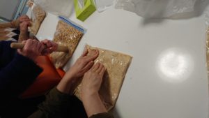 煮上がった大豆を潰して〜麹を混ぜるではなく、